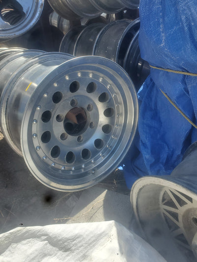 Set of 4 Aluminum modular wheels. Size 16x8. Chevy lug patern, also should fit other 6 lug vehicles. 4.5 inch backspacing. Will clean up nice. Good used condition.
