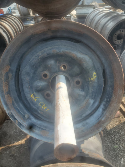Set of 4. 1966 14x5 Chevy factory steel wheels. 5x4.75 lug pattern. 3.75" backspacing.