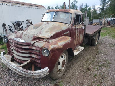 1953 Chevy load master 2 ton flatbed dumptruck project or? Rolling, Good Hydraulic ram for dump bed. No motor/trans. Hood is definitely toast, awesome 5 window cab that is super solid. Bill of sale.