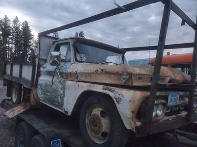 1964 GMC flatbed dually project or? 305V6, 4spd, engine is supposed to run, cab is rough, decent steel flatbed w/headboard, side rails and tailgate, engine/parts hoist, 19.5 wheels WO/split rims, radiator is gone, has a lot of good parts. bill of sale.