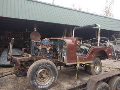 1969 era jeep cj5 project or? 4cyl. Manual trans, runs good, tub is not bolted to chassis. Tub appears to have minimal rust on the very bottom edge which is covered by diamond plate as usual. Chassis looks fine, Tons of good parts, bill of sales. Wheels pictured are not included.