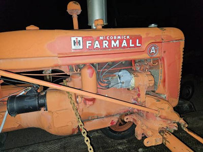 40/50s Farmall Super A tractor project or yard art, awesome little tractor and in great condition, motor was rebuilt and never ran, has been sitting for a few years, motor will turn over, could use a couple tires. Battery is gone.