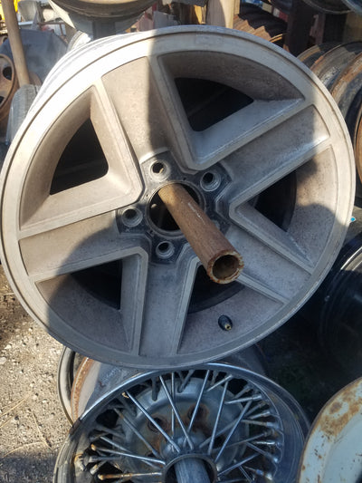 Chevy 15×7 Z28 Camaro wheels, no center caps. 5×4.75 lug pattern