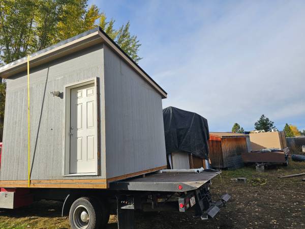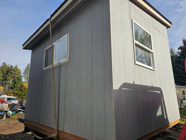 NICE 10x12 addition, we just finished it and have no room at our new location. (Stuff inside is not included) New Tin roof, Interior has awesome texture/paint, fully wired, fully insulated 2"× 6" floor/walls and lid, bottom side has been fully sheeted and has 3 skids. This built for Montana weather and was built right and We have spent alot more than what we are as in the last 10 months just to put it together.