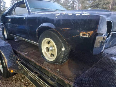 RARE MUSCLE CAR 1968 AMC AMX 2 SEATER PROJECT, 343 4V, AT, clear title, THIS CAR HAS BEEN PARKED FOR QUITE A FEW YEARS, SUPPOSEDLY RUNS, fairly solid and complete. IT WOULD BE A PERFECT (drive it the way you found it) PATINA CAR AS IS. these are rare cars. DON'T MISS OUT!! i also have other AMC motor/trans and vehicle options available. Aluminum slotted wheels pictured are not included, it will have random steel wheels on it.
